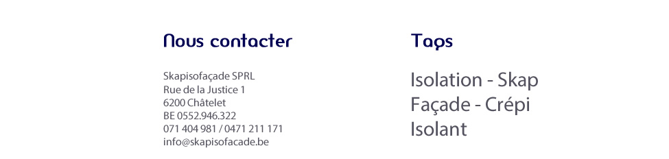 L’entreprise SKAPISOFACADE est une société dynamique de plus de 8 ans d’expérience qui vous propose un concept innovant pour l’isolation de votre façade. Nous sommes spécialisé dans le Crépi, l'isolation de façade extérieur et le béton imprimé.
